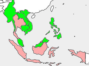 アセアン・カジノのある国(緑)と無い国(赤)