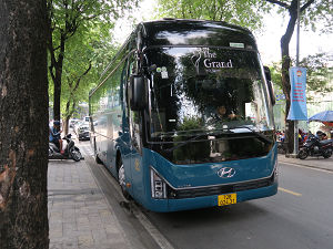 翌朝、ホテルをチェックアウトしてから、スーツケースを引き摺りながら徒歩でハイハ・ビルまで5分ほどかけて移動する。この雑居ビルの前からホーチャムのグランドカジノ行きのシャトルバスが出る。ビルの中にあったシャトルバスの受付でチェックインを済ませ、ビル前に停まった大型バスに乗り込む。これから3時間かけてホーチャムまで移動する。